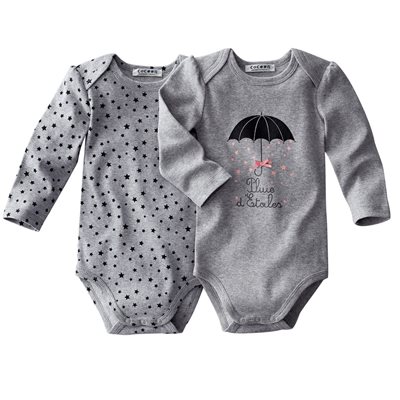 2 βαμβακερά κορμάκια με μακριά μανίκια