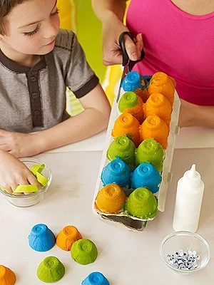 - Χρωματίστε με διαφορετικά χρώματα το εξωτερικό της αυγοθήκης και αφήστε το να στεγνώσει.
